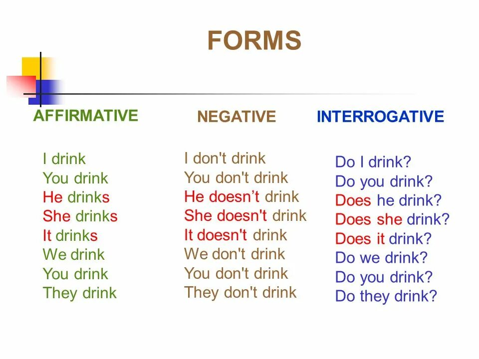 Affirmative sentences примеры.