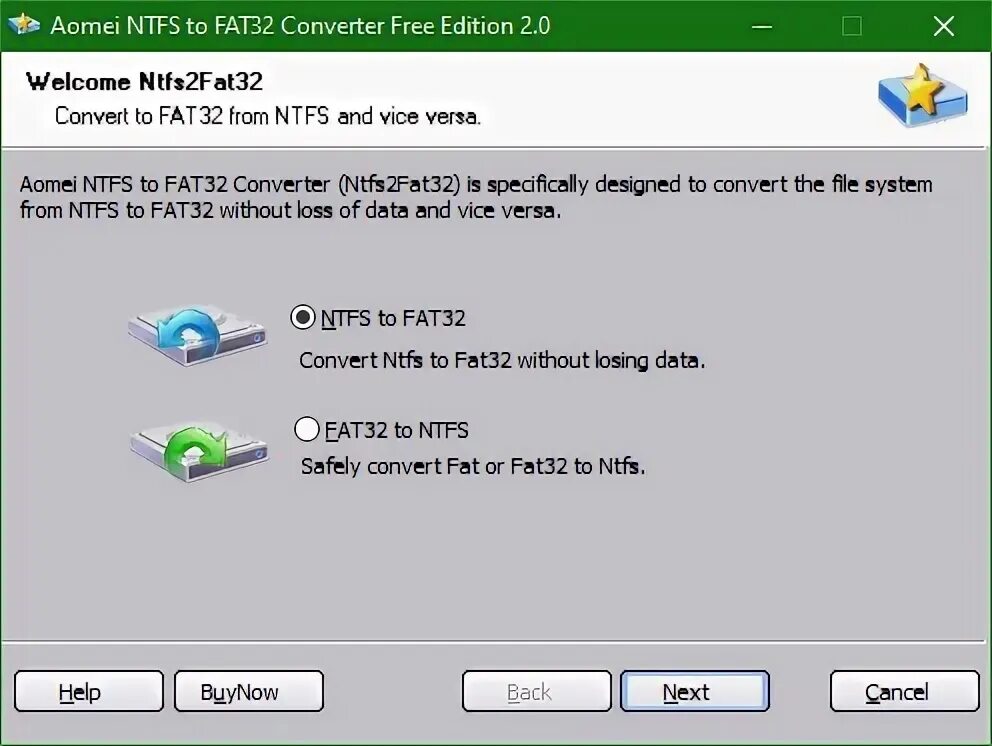 Aomei fat32 to ntfs.