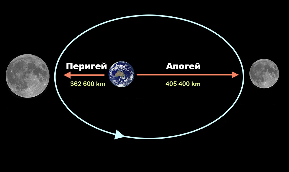 Орбита Луны перигей и апогей.