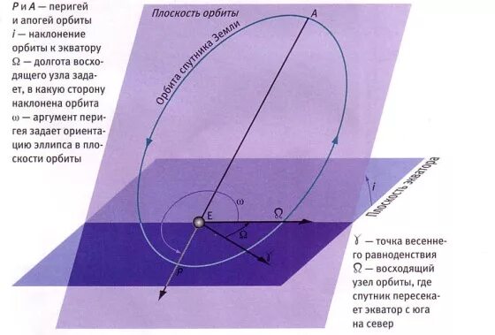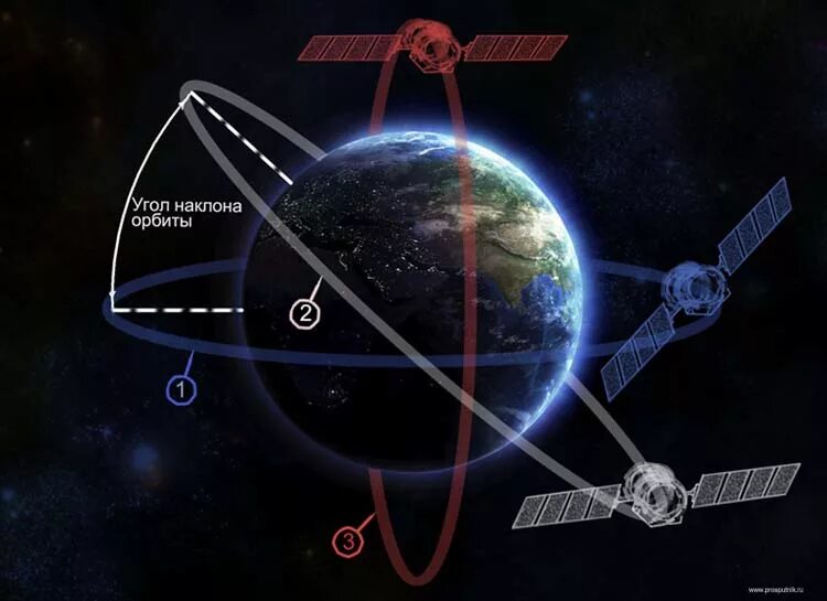 Угол наклонения орбиты спутника.