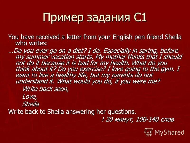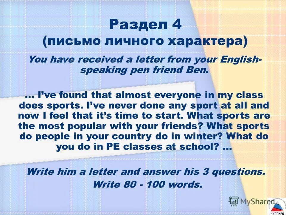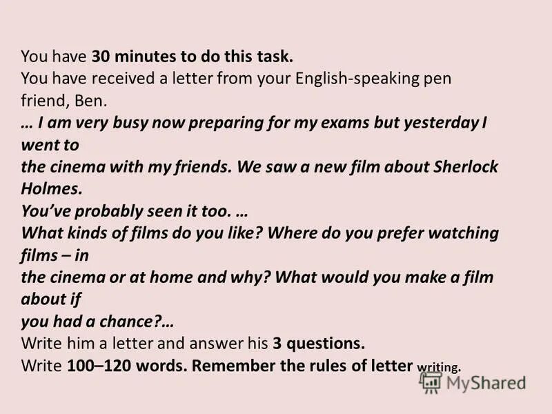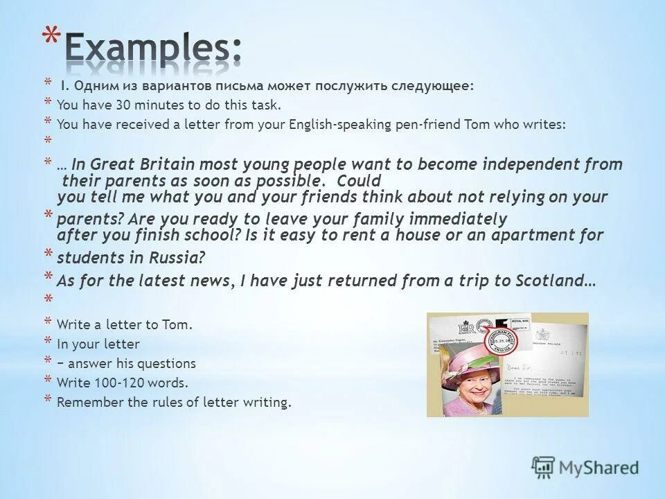 You have received a Letter from your English speaking письмо.