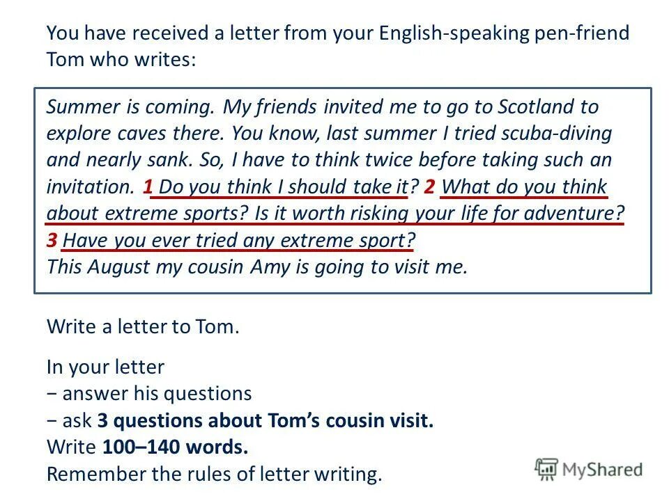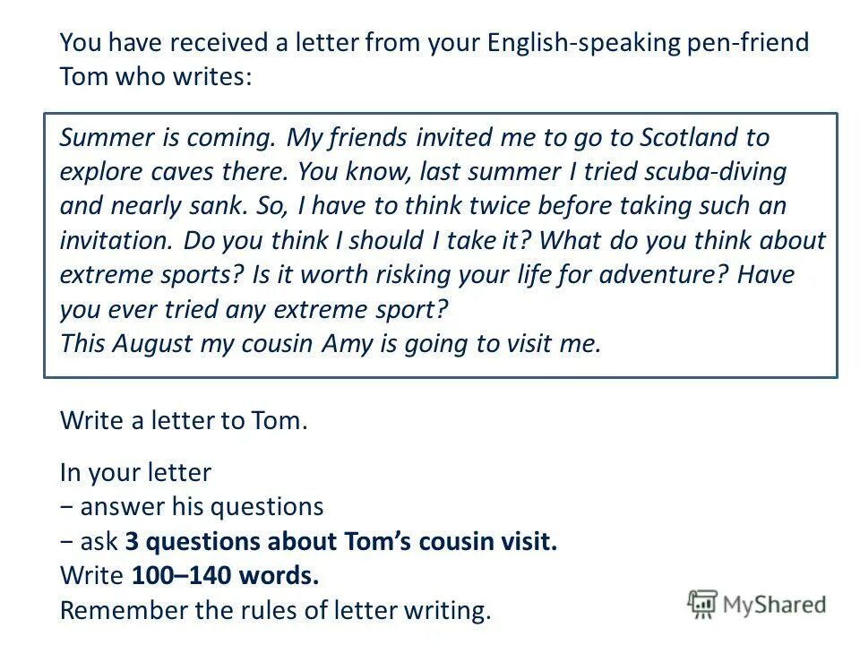You have received a Letter from your English speaking Pen friend.