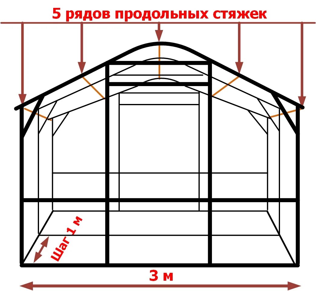 Схема теплицы из поликарбоната 3х8.