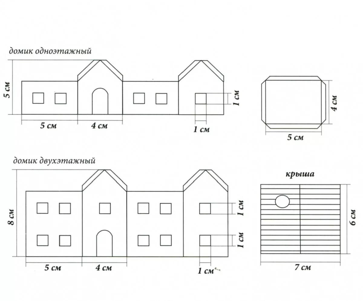 Чертеж картонного домика.