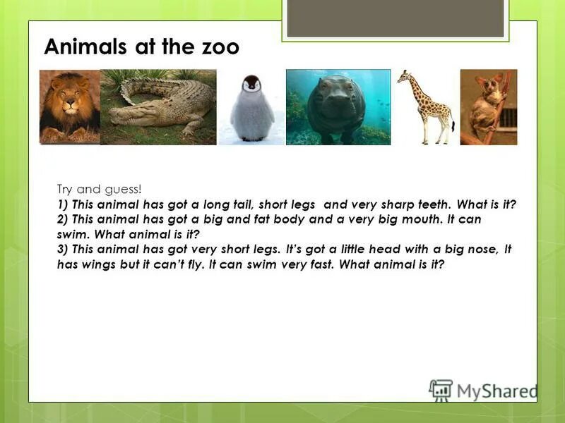 Задания Dear Zoo.