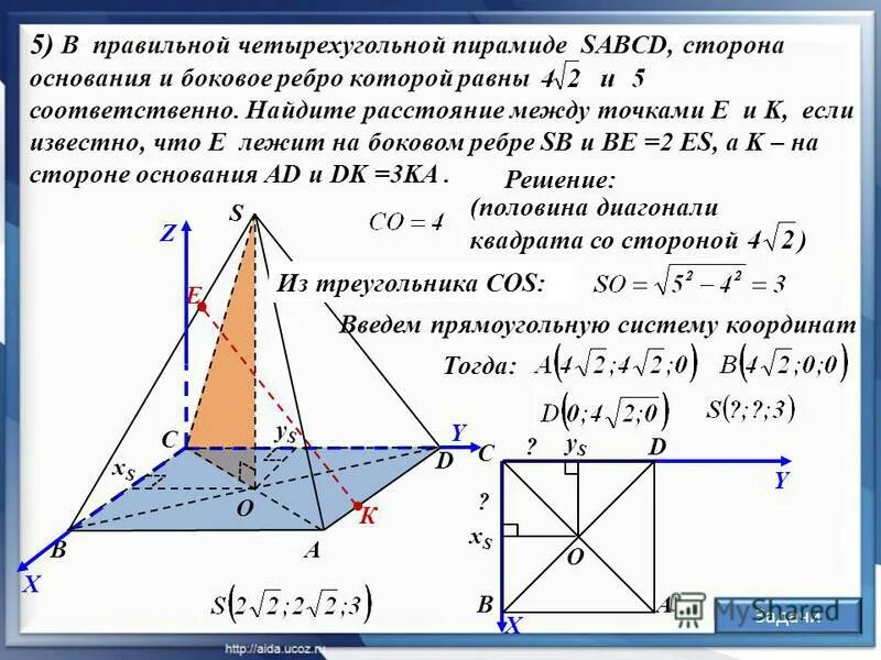 В правильной треугольной пирамиде сторона равна 3 а боковое ребро.