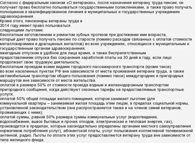 Льготы ветеранам труда.
