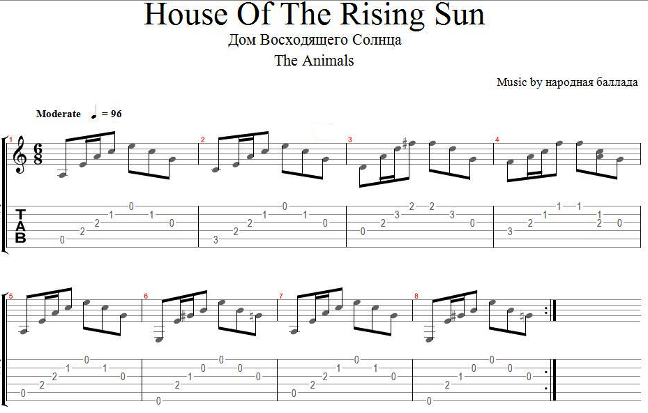 Гимн восходящего солнца Ноты для гитары.