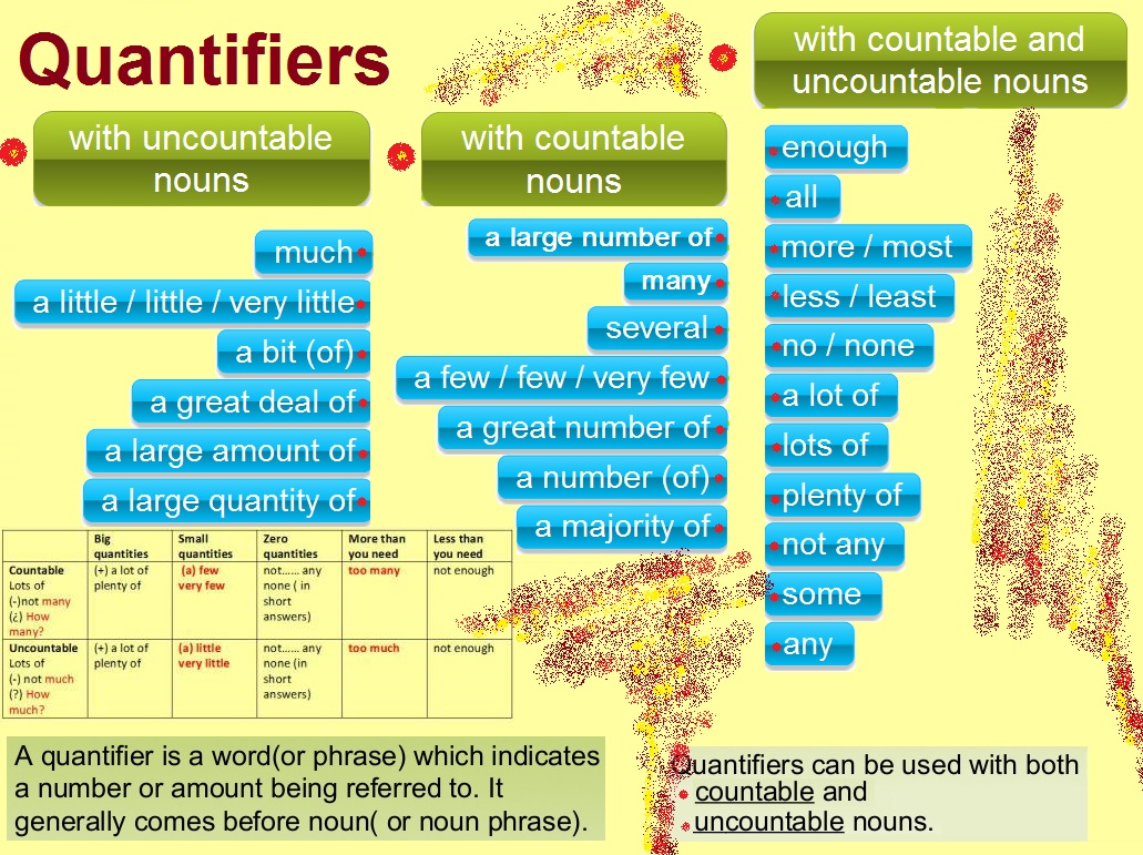 Some any much many a lot of a few a little правило.