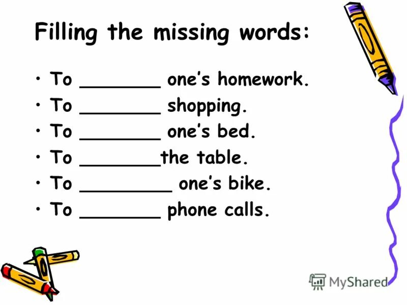 Fill in the missing Word ответы.