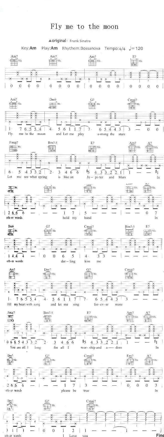 Fly me to the Moon табы для гитары.