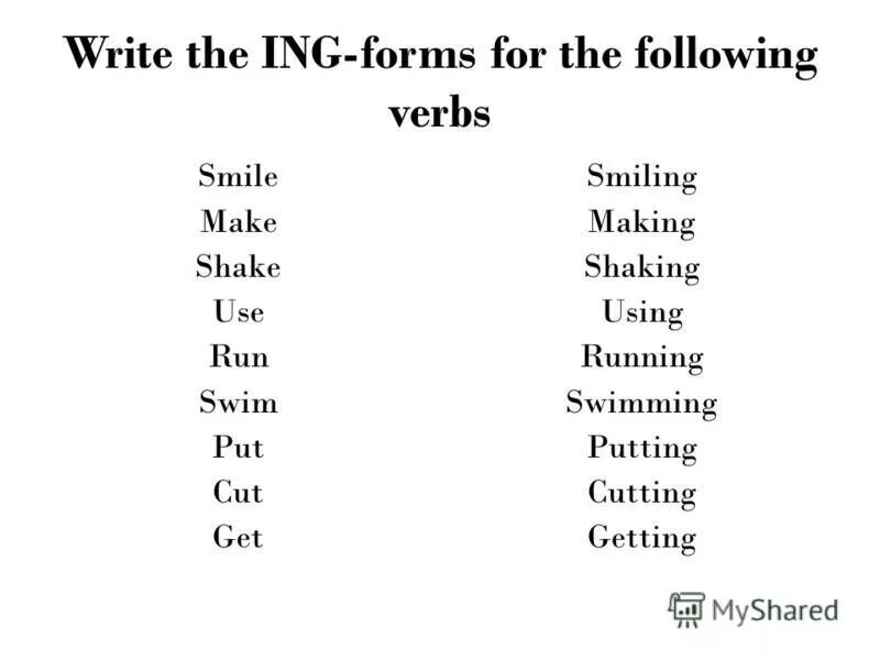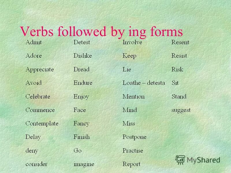 Инфинитив ing form.