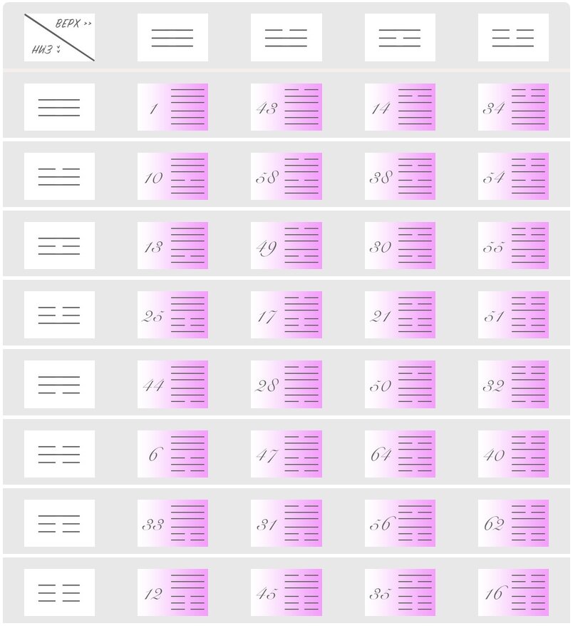 Гексаграмма Ицзин таблица.