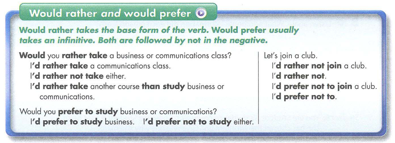 Would prefer would rather правило.