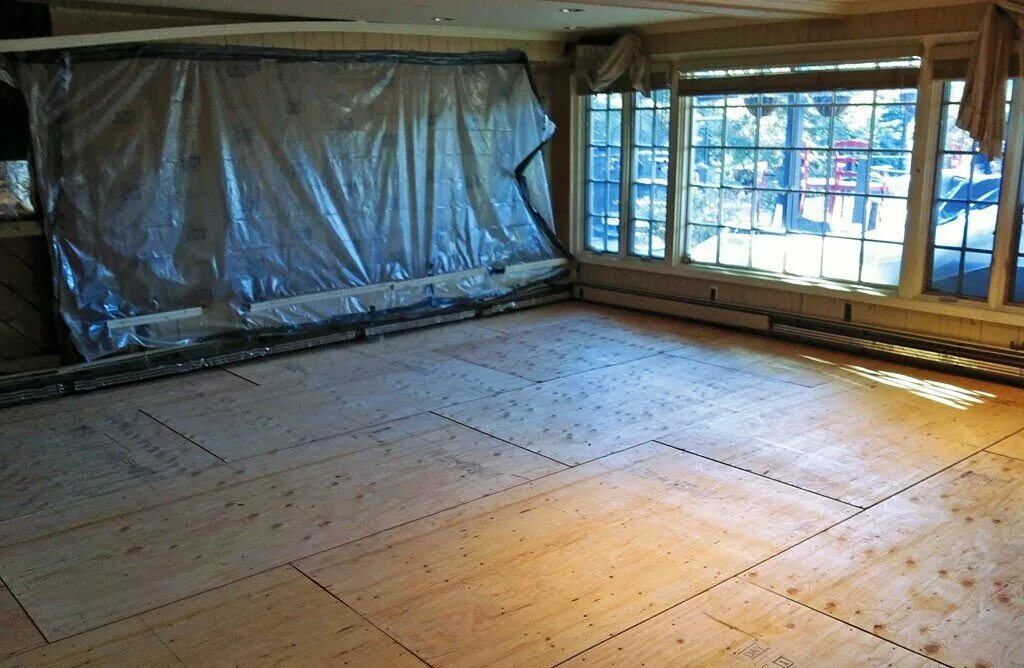 Монтаж фанеры на пол.