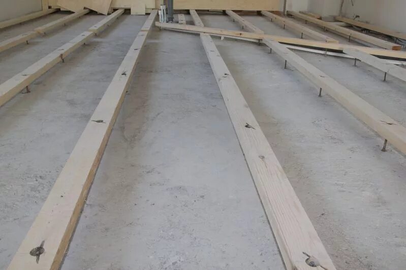 Монтаж ДСП на пол по лагам.