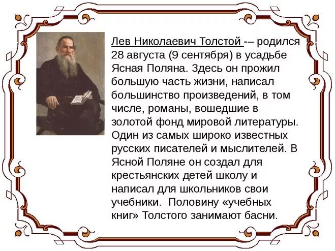 Рассказ о Леве Николаевича Толстого.