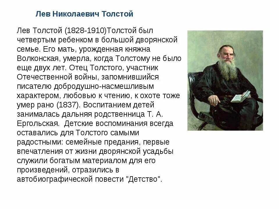 Л Н толстой биография 4 класс.