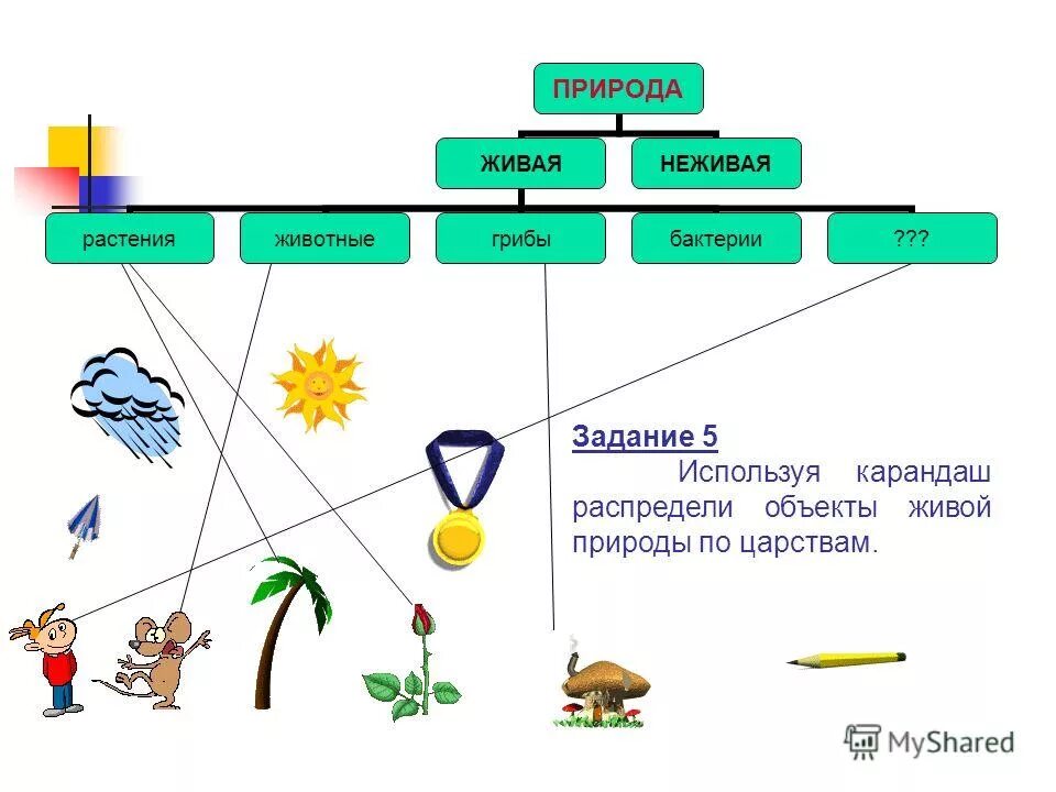 Объекты живой и неживой природы.