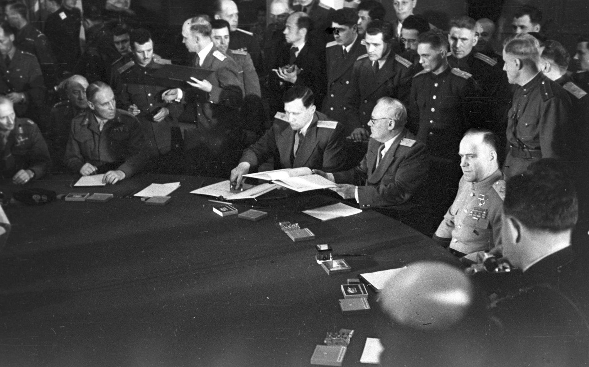 Рокоссовский подписал акт о капитуляции Германии.
