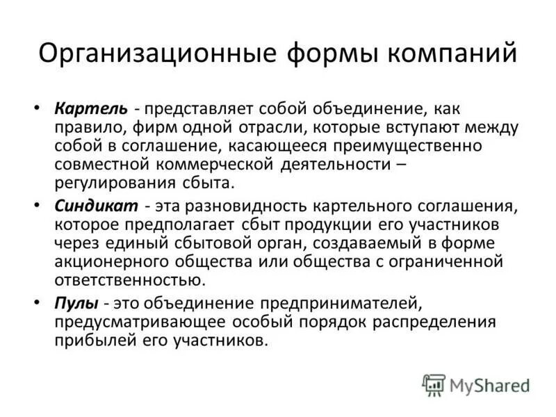 Монополия Трест Синдикат Картель.