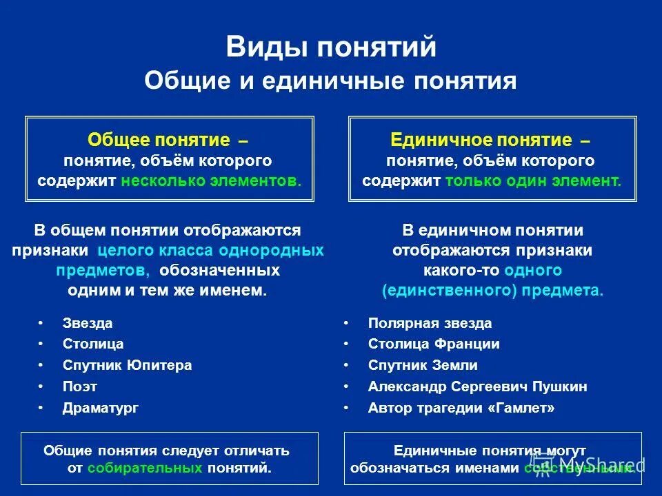 Виды понятий в логике с примерами.