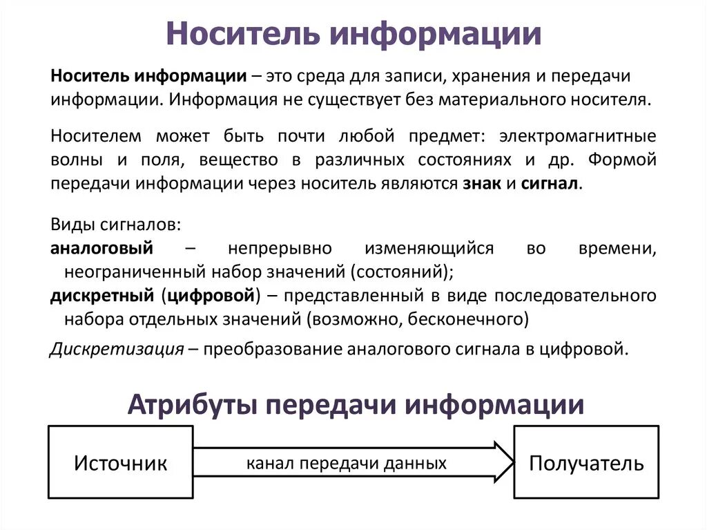 Виды носителей информации.