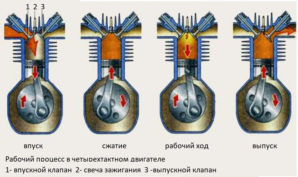 Принцип действия 4 тактного двигателя схема.