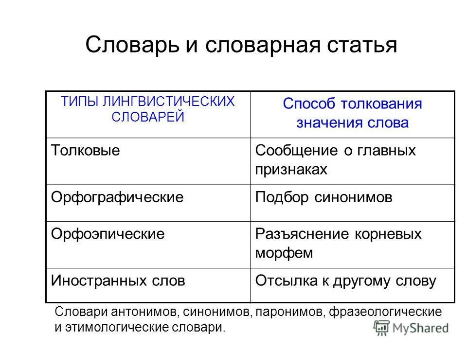 Классификация и типы словарей.