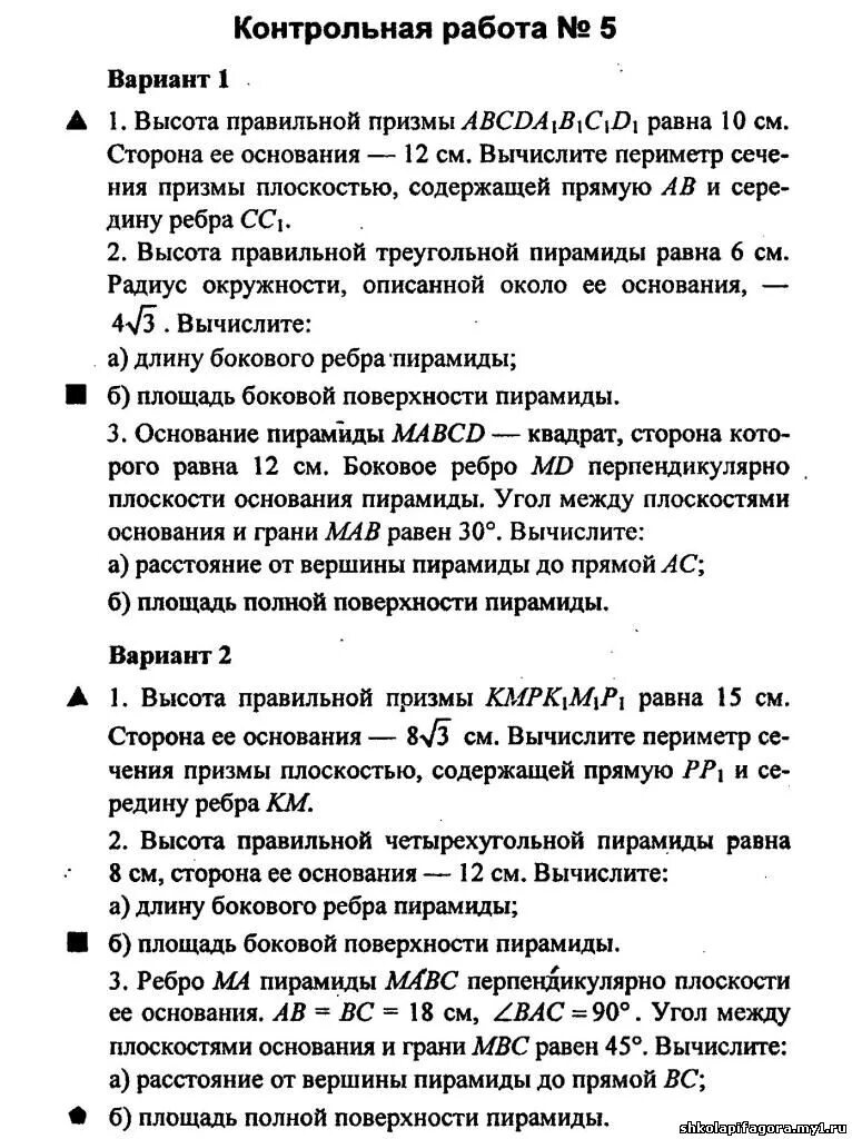 Контрольная по геометрии 10 класс стереометрия.