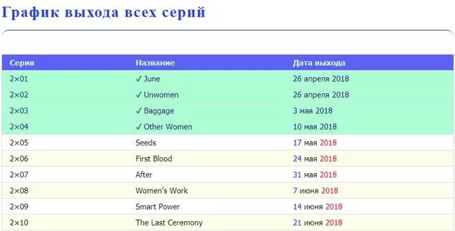 Дата выхода серий.