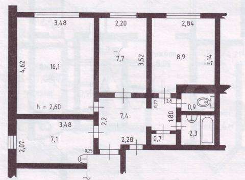 Схема 3х комнатной квартиры в панельном 9 этажном доме.