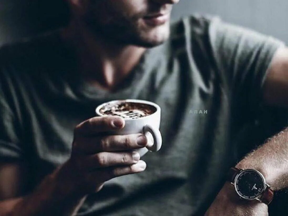 Парень с чашкой кофе.