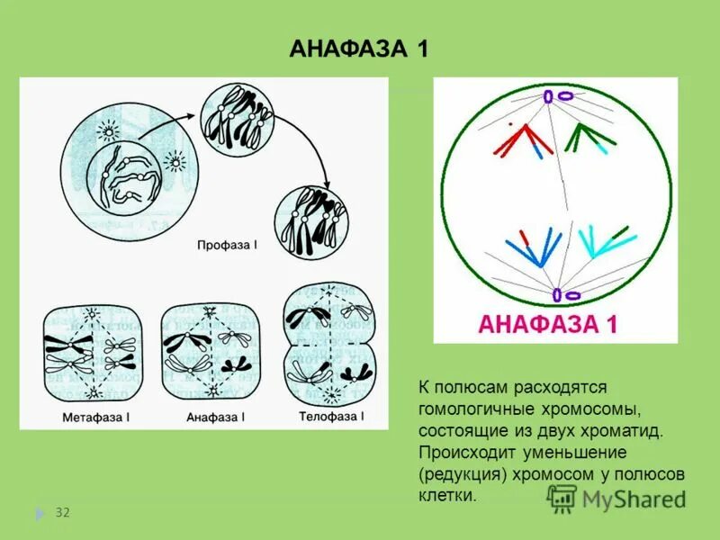 Наличие гомологичных хромосом у полюсов.
