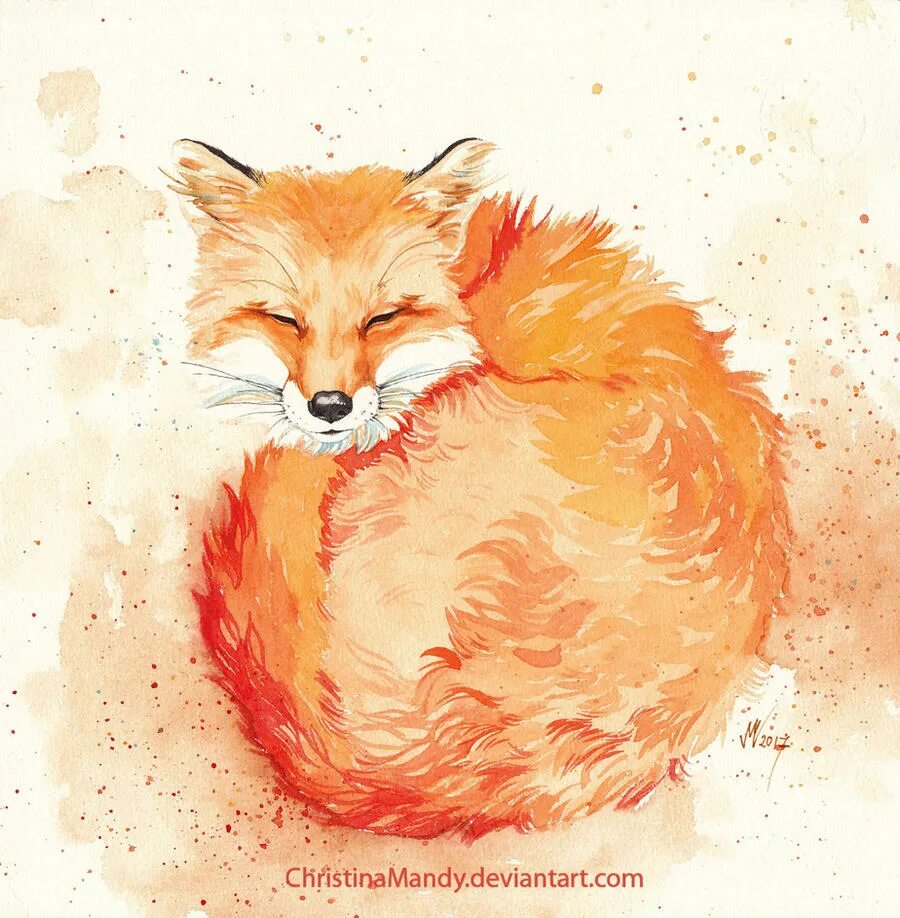 Лиса акварелью.