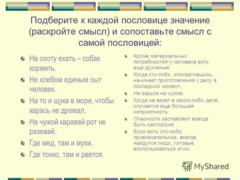 Найди толкование каждой пословицы