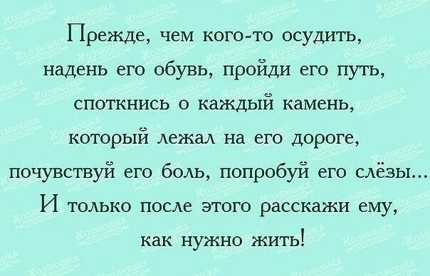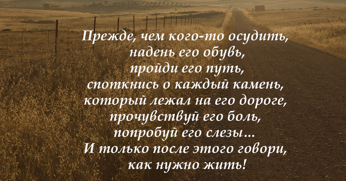 Прежде чем осудить человека обуй его обувь пройди его путь.