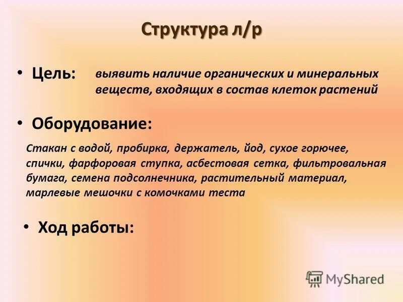 Оборудование ход работы.