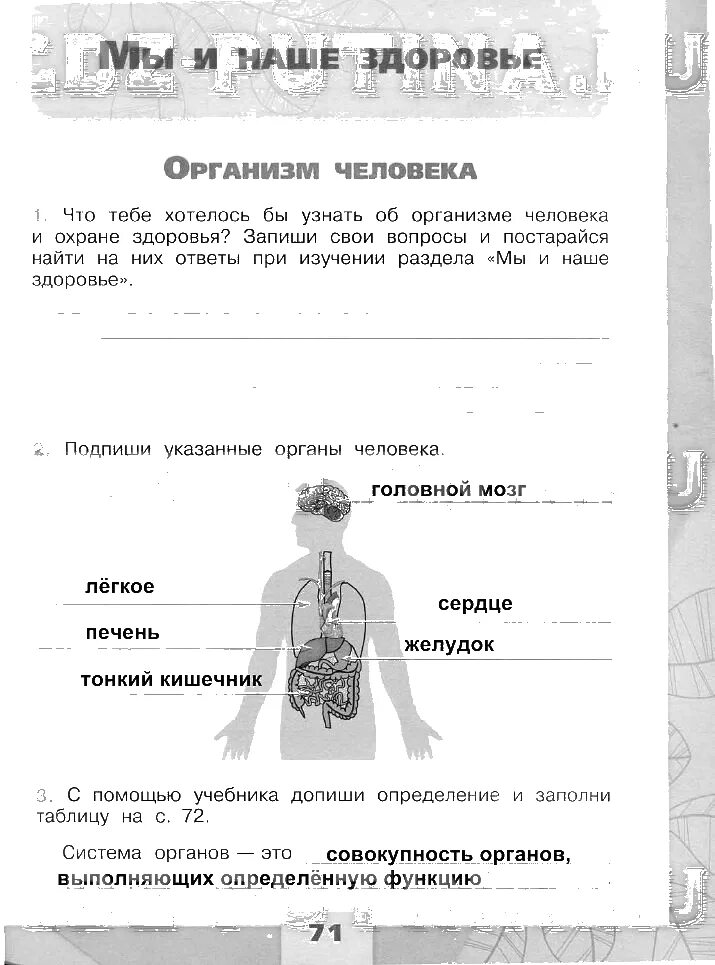 Окружающий мир 3 класс рабочая страница 71.