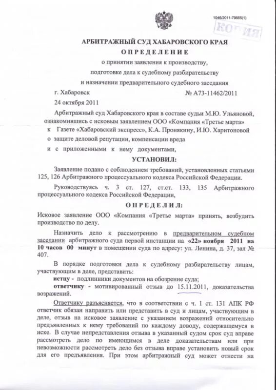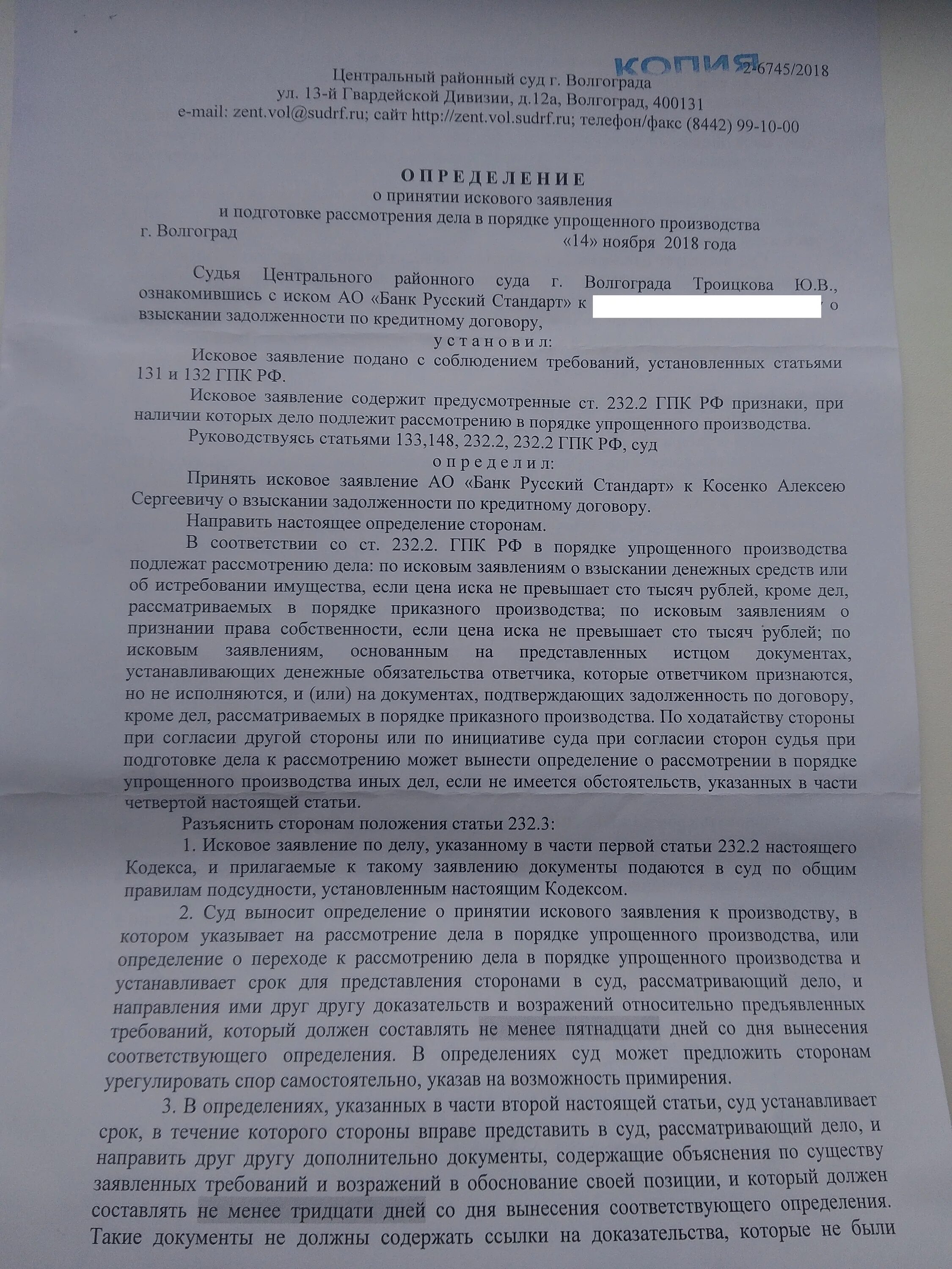 Определение о принятии в упрощенном порядке.
