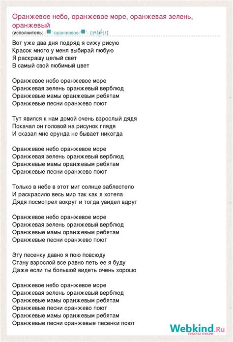 Оранжевая песенка текст.