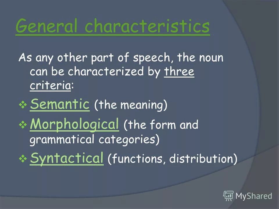 General characteristics of the Noun.