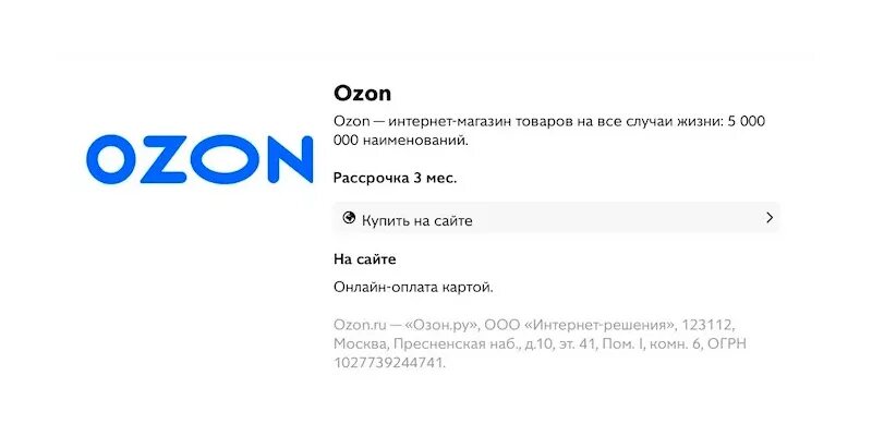 Товар в рассрочку на Озон.