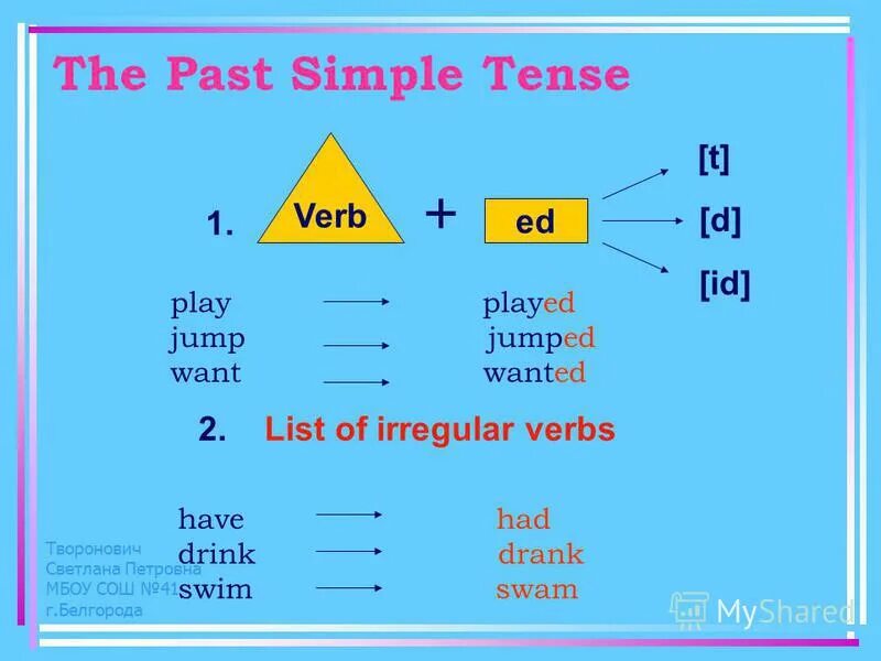 Паст Симпл в английском таблица правило.