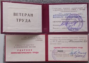 Удостоверение ветерана труда.