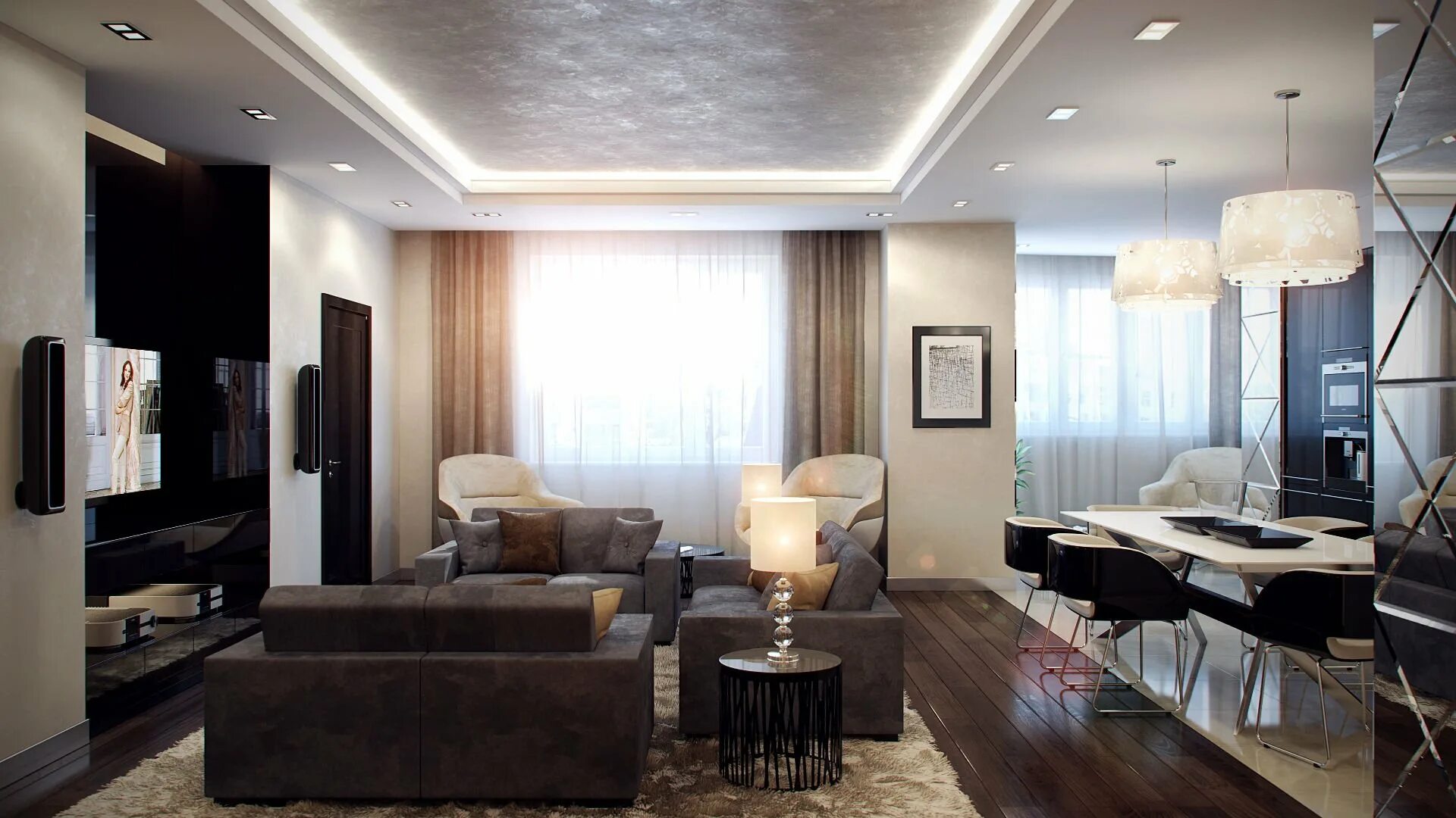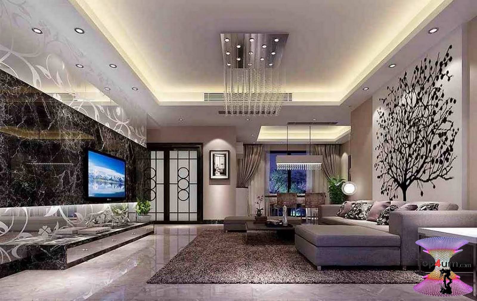Современный потолок в гостиной.