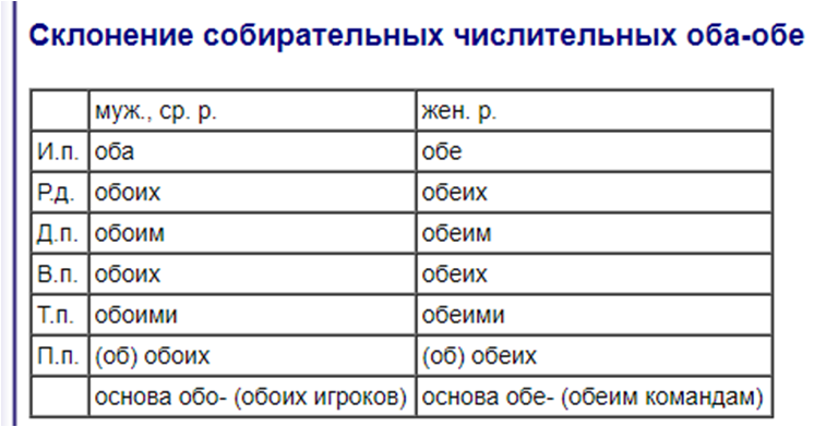 Склонение числительных по падежам таблица.
