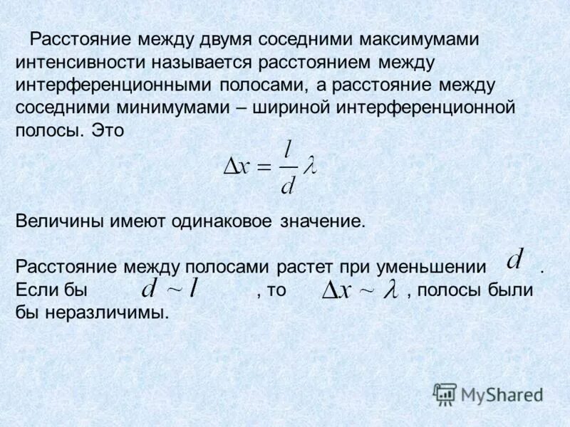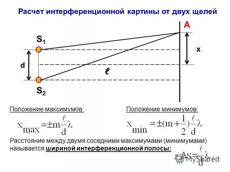 Формулой для координат интерференционных максимумов:.