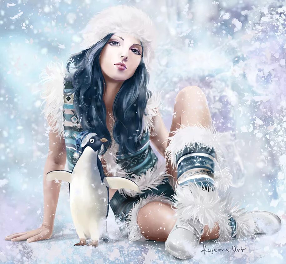 Рисунки зимних девушек.