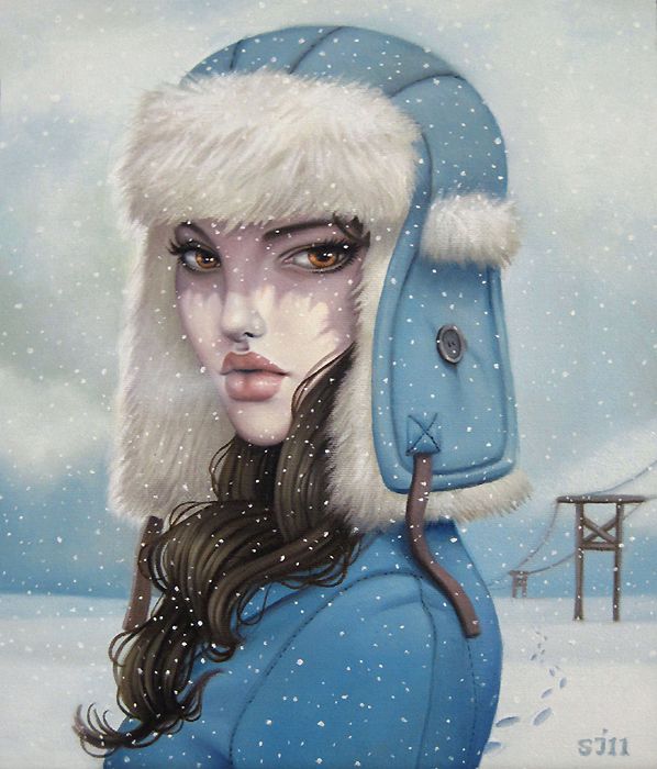 Нарисованные девушки зимой.